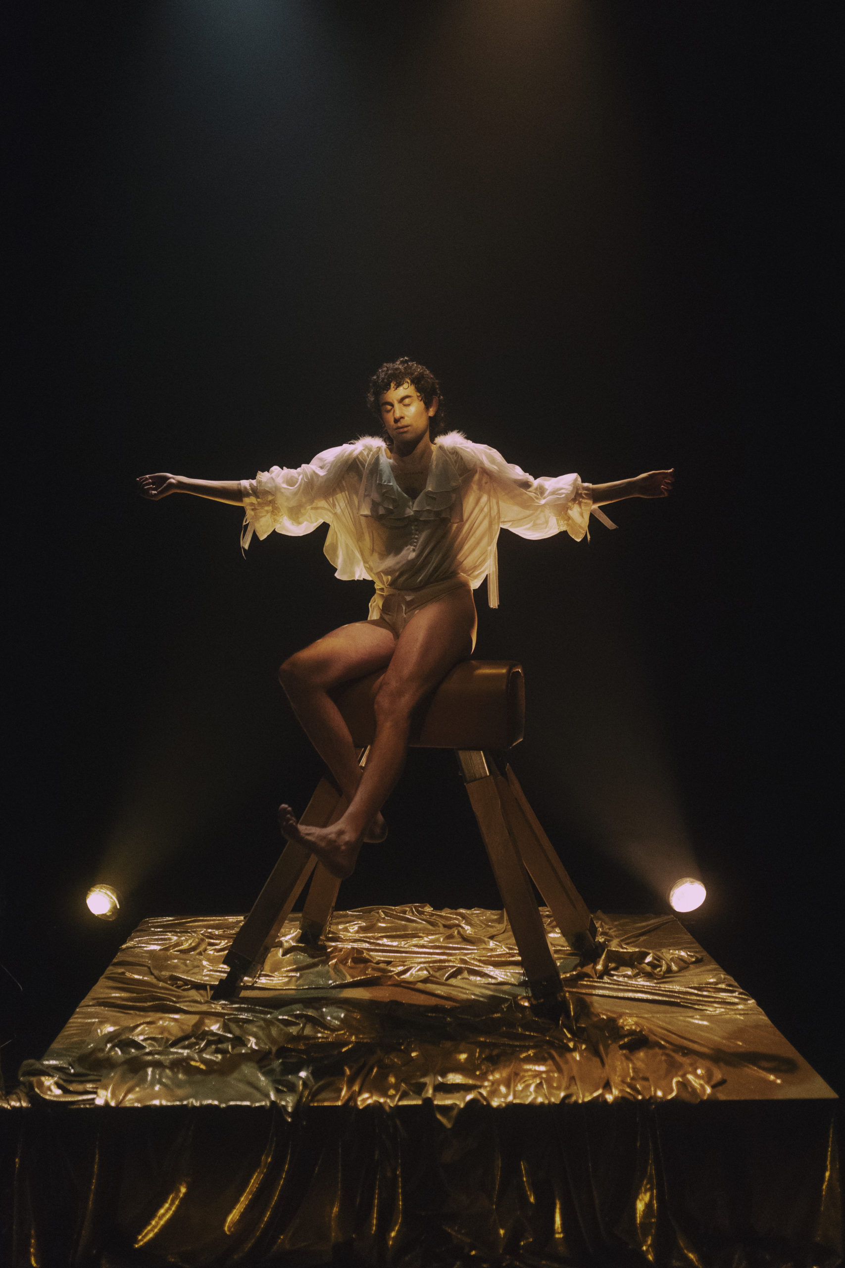 Arriva per la prima volta a Modena la giovane promessa della coreografia spagnola Alberto Cortés, in una profonda e poetica riflessione sulla vulnerabilità, il potere degli affetti e la bellezza nascosta nella fragilità. In un bar dorato sospeso tra sogno e realtà, emerge la forza inaspettata di un amore queer, sdolcinato, ribelle. «Se fossi un angelo – si chiede l’artista – eternamente innamorato di un amore non consumato ed eternamente platonico allora quello sarebbe il vero Amore? […] Come si dichiara ciò che non può essere espresso a parole? Come proteggeremo questi corpi e queste identità quando grideranno pubblicamente come si sentono quando amano; forse ora è il momento di contrattaccare. C’è una forza in tutto ciò che è estremamente fragile, come disse Rilke “ogni angelo è terribile” e come disse Ana Torroja in La forza del destino: “una notte al Golden Bar ho deciso di attaccare”».